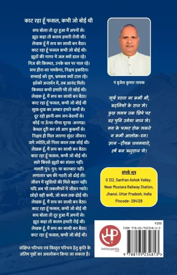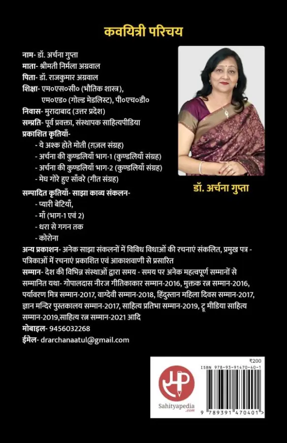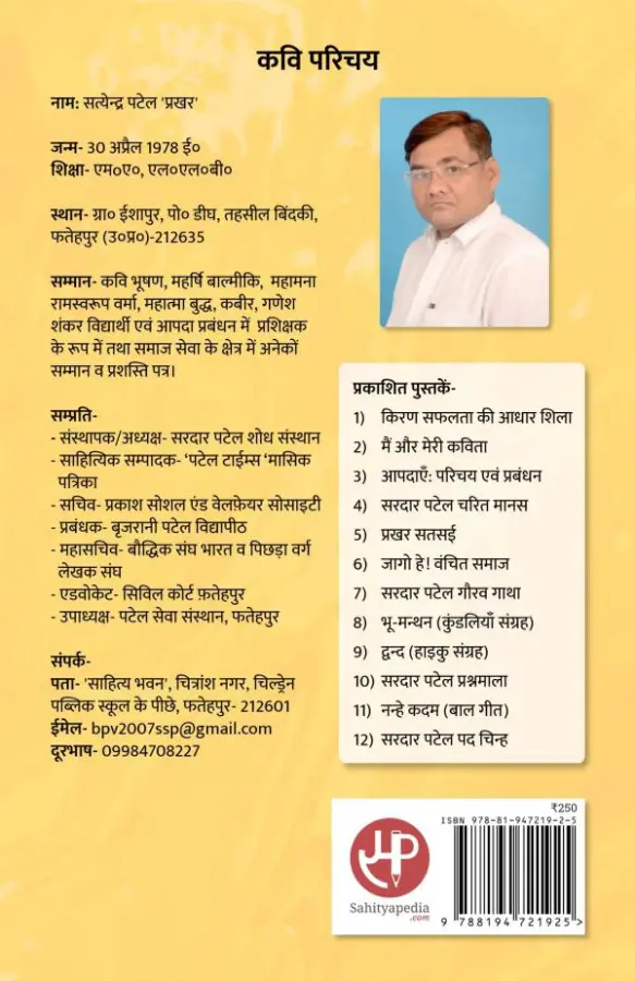 Dr.Deepak Kumar 1 book · 180 words Safal Jeevan Ka Rahasya: Jo Aapka Jeevan Badal De- Secrets of Successful Life Dr. Deepak Kumar मनुष्य का जीवन अनमोल है। आपको इतनी खूबसूरत जिंदगी मिली है, इसमें अपने लक्ष्य की प्राप्ति कर समाज में इतिहास लिखने का आपको सुनहरा मौका मिला है। आप अपने लक्ष्य की प्राप्ति हेतु इस पुस्तक का उपयोग कर अपने जीवन... Ramesh Adheer 4 books · 41,921 words Aur Kya Hain Aap (Aadhyatmik Geet-Gazal Sangrah) Ramesh 'Adheer' जिस प्रकार तन के पोषण हेतु अन्न- जल आवश्यक हैं उसी प्रकार मन के पोषण हेतु आध्यात्मिक चिंतन- मनन आवश्यक है। इसी उद्देश्य की पूर्ति हेतु प्रस्तुत है यह प्रयास जिसके अध्ययन, मनन एवं चिंतन के द्वारा आप अपने मन... Dr. Kishan tandon kranti 13 books · 52,151 words Nava Radda (Kavita-Sangrah) Kishan Tandon Kranti छत्तीसगढ़ के माटी में जन्मे कवि, लेखक, विचारक एवं प्रशासनिक अधिकारी- साहित्य वाचस्पति श्री किशन टण्डन क्रान्ति द्वारा रचित छत्तीसगढ़ी कविता संग्रह 'नवा रद्दा' में 77 कविताएँ संग्रहित हैं। यह कृति छोटे- छोटे बिम्बों के माध्यम से विविध रंग बिखेरती... Dr. Kishan tandon kranti 13 books · 52,151 words Taiha La Baiha Lege (Kavita-Sangrah) Kishan Tandon Kranti छत्तीसगढ़ के माटीपुत्र कवि, लेखक, विचारक एवं प्रशासनिक अधिकारी- साहित्य वाचस्पति श्री किशन टण्डन क्रान्ति द्वारा रचित छत्तीसगढ़ी कविता संग्रह : 'तइहा ल बइहा लेगे' में 77 कविताएँ संग्रहित हैं। इसमें परम्पराओं, प्रथाओं एवं रीति-रिवाजों के क्रमशः विलुप्त होने तथा... G K OHRI 6 books · 18,424 words Bhakt Kabir G. K. Ohri 'Khadim' जी. के. ओहरी 'खादिम' जी द्वारा कबीर जी के जीवन एवं उनके विचारों पर एक पुस्तक। Dr. Kishan tandon kranti 13 books · 52,151 words Parchhai Ke Rang (Kavya-Sangrah) Kishan Tandon Kranti कवि, लेखक, विचारक एवं प्रशासनिक अधिकारी- साहित्य वाचस्पति श्री किशन टण्डन क्रान्ति द्वारा रचित कृति : 'परछाई के रंग' काव्य-संग्रह में 87 कविताएँ संग्रहित हैं। इसमें न केवल बचपन की कल्पनाओं को खूबसूरत शब्द देकर इन्द्रधनुषी रंग भरे गए हैं,... Manisha Manjari 13 books · 3,40,118 words Life Flows Like A River Manisha Manjari Good things fall apart so that better things can fall together. Vedhika Saran, a pediatrician! Hated by her mother! Destiny hits her hard and is abandoned by her loved ones too. The turns of events take her into the lap... सत्येन्द्र पटेल ‘प्रखर’ 19 books · 3,57,003 words Sardar Patel Katha Sagar (Alha Chhand Kavya) Satyendra Patel ‘Prakhar’ नवोदित भारत के निर्माता सरदार वल्लभ भाई पटेल जी के जीवन ,कृतित्व एवं व्यक्तित्व से भारत के बहुतायत हिंदी भाषी क्षेत्रों में निवास कर रहे आमजनमानस को सुपरिचित करवाने के आशय से लिखी गयी एक अद्वितीय रचना है। यह काव्य... Dr. Kishan tandon kranti 13 books · 52,151 words Sabak (Laghukatha-Sangrah) Kishan Tandon Kranti कवि, लेखक, विचारक एवं प्रशासनिक अधिकारी, साहित्य वाचस्पति- श्री किशन टण्डन क्रान्ति द्वारा स्वरचित लघुकथा- संग्रह : 'सबक' में 127 लघुकथाएँ शामिल हैं, जो विविध रंग बिखेरते हैं। सभी कहानियाँ ग्रामीण एवं शहरी परिवेश में घटित होने वाली रोजमर्रा की... Dr Archana Gupta 9 books · 67,903 words Megh Gore Hue Saanware (Geet Sangrah) Dr. Archana Gupta डॉ. अर्चना गुप्ता जी द्वारा विभिन्न विषयों को समाहित करते हुए विभिन्न छंदों पर आधारित गीतों का सुन्दर संग्रह। Ravi Prakash 15 bo